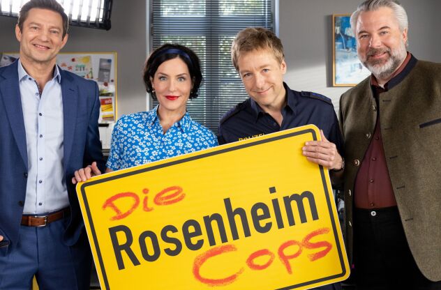 “Die Rosenheim-Cops”: Von links: Sven Hansen (Igor Jeftić), Miriam Stockl (Marisa Burger), Michi Mohr (Max Müller), Anton Stadler (Dieter Fischer) ZDF/Markus
