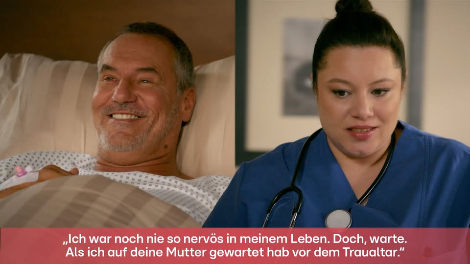 Nun steht die Operation kurz bevor. Vanessa geht in Richards Krankenzimmer, um nach ihm zu schauen. „Na, wie ist die Lage?“, fragt sie ihn. „Ich glaube, ich war noch nie so nervös in meinem Leben“, gesteht er ihr. Dann fügt er scherzhaft hinzu: „Doch, warte, als ich auf deine Mutter gewartet habe, vor dem Traualtar.“ Richard lächelt kurz, wird dann aber wieder ernst, denn die Angst gewinnt erneut die Oberhand. Wie es Richard in den letzten Minuten vor seiner Operation geht, zeigt das Video oben.